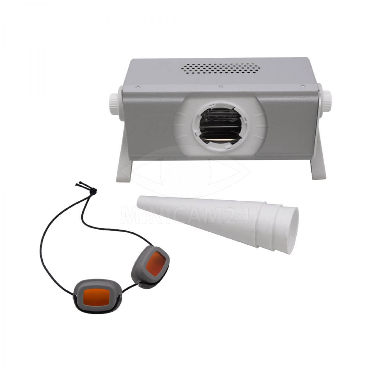 Ультрафиолетовый прибор с излучателем закрытого типа предназначен для процедур облучения полости рта. Прибор содержит лампу ультрафиолетового спектра. Питается прибор от сети переменного тока 220 вольт, потребляемая мощность 300 Вт.