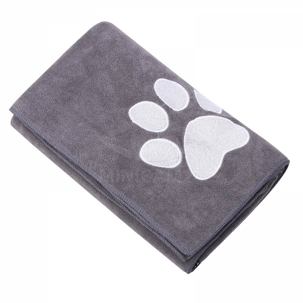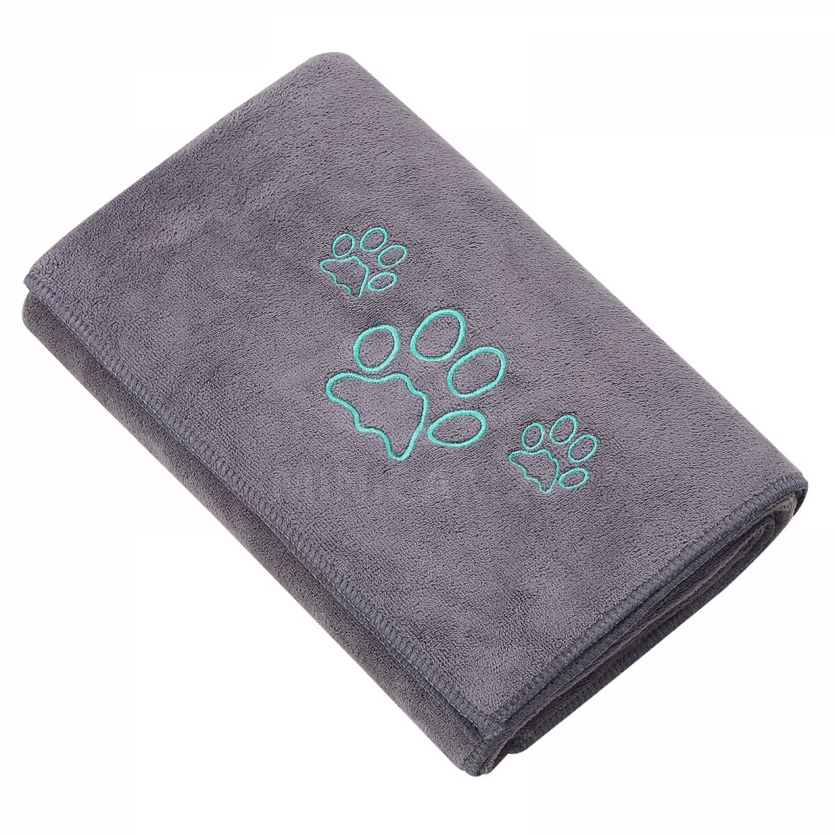 Полотенце для собак и кошек впитывающее из микрофибры - может использоваться как лежанка или подстилка в домике питомца, на мягкой мебели или в салоне автомобиля. С помощью полотенца можно протирать шерсть питомца. Мягкое  пушистое полотенце для животных из микрофибры выполнено в сером цвете с вышивкой. Оно прекрасно впитывает все неприятные запахи и жидкости, при этом не оставляет следов на мягкой мебели. Впитывающие свойства позволяют использовать полотенце для сушки животного после мытья или прогулки под дождем. Микрофибра безопасна для кошек и собак, хорошо пропускает воздух, легко очищается и не теряет своей формы и свойств  даже после частой эксплуатации.